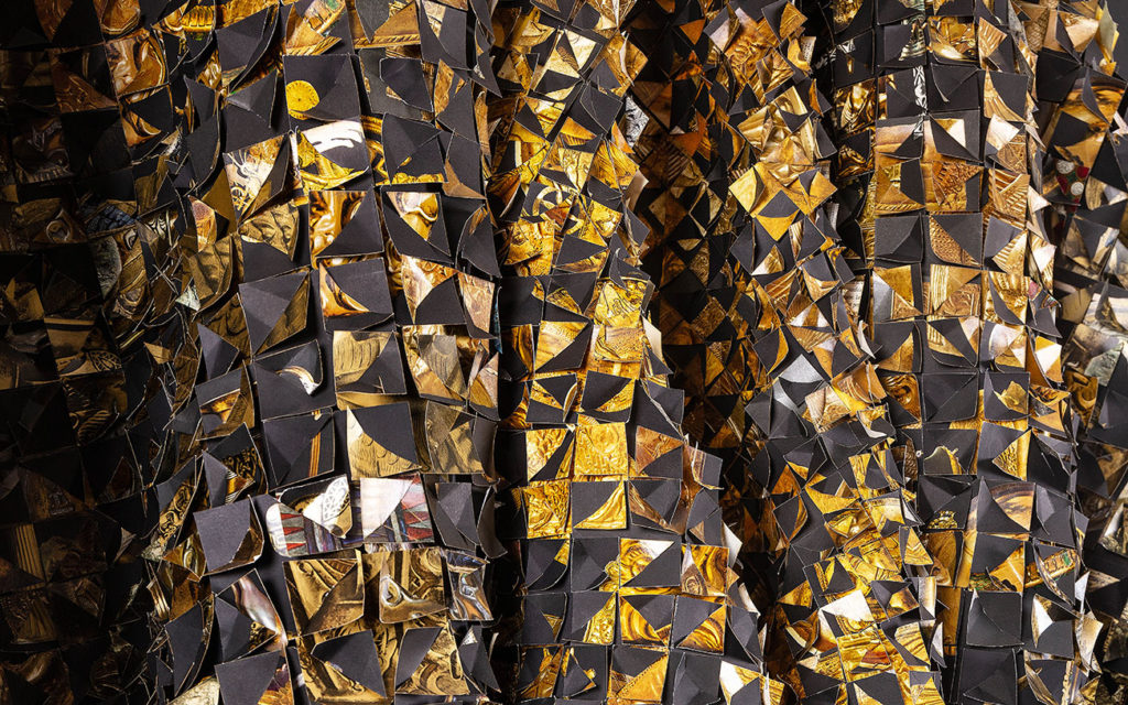 Investidura de papel tejido con documentos arqueológicos de oro desplazados del Antiguo Egipto y del Antiguo Imperio Persa.